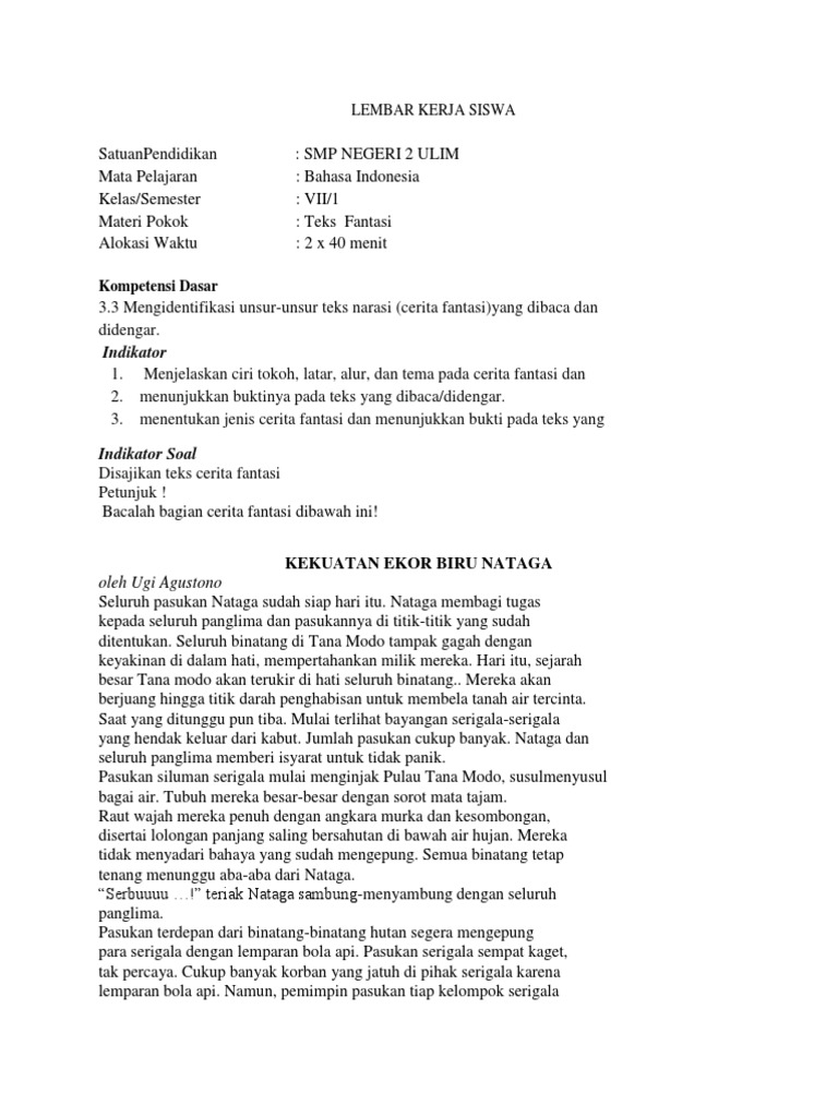 Biasanya berisi cerita kehidupan seputar istana. Pada suatu hari aku dan kelompok regu dari sangga perintis siap memasang tenda di bumi perkemahan, lokasi perkemahan dekat hutan jati yang konon tempat itu pada jaman dulu bekas. Contoh soal uraian materi teks deskripsi dan teks cerita fantasi kelas 7 kurikulum 2013. Makanan untuk organ dalam tubuh. Seekor tikus lapar menemukan sebuah keranjang yang penuh jagung.